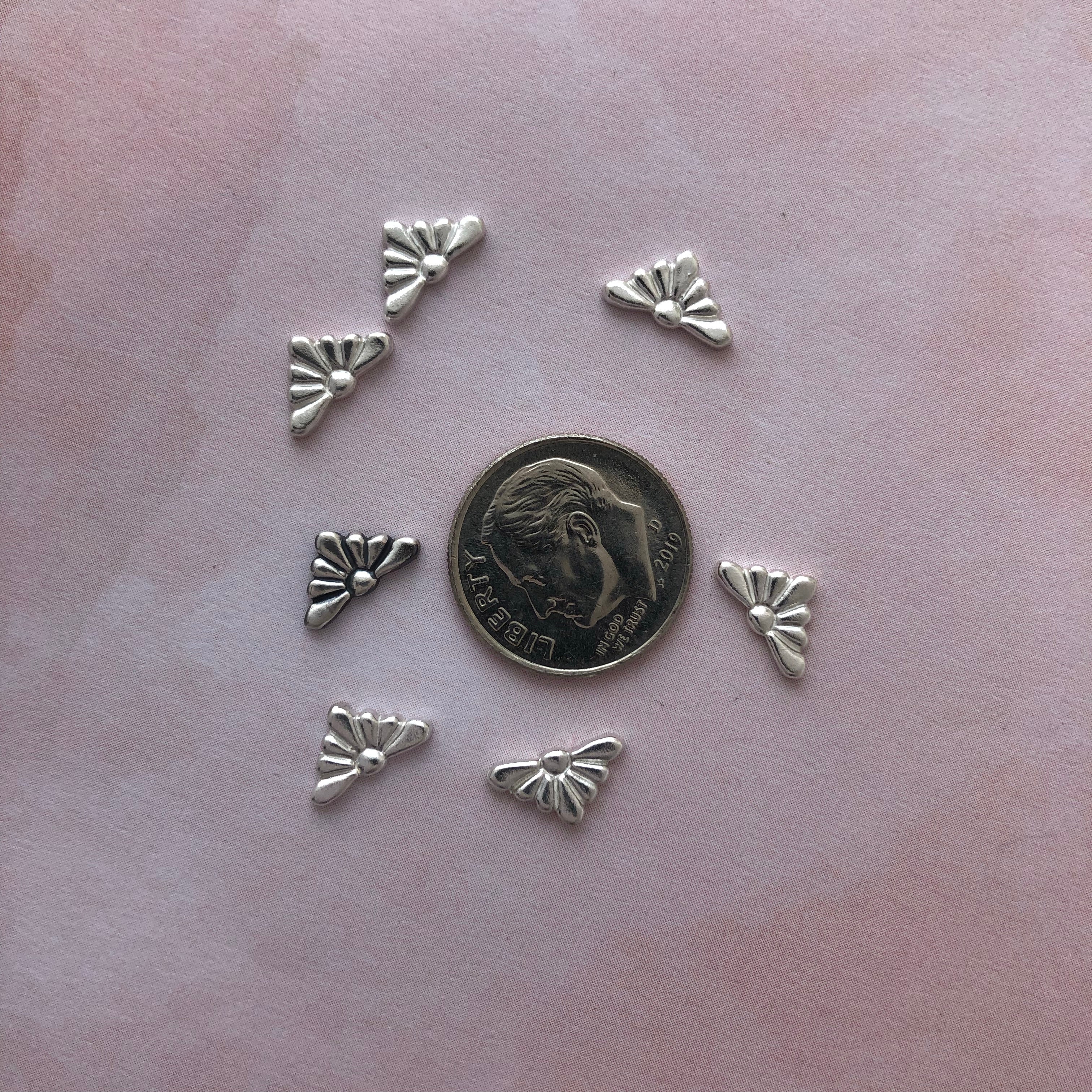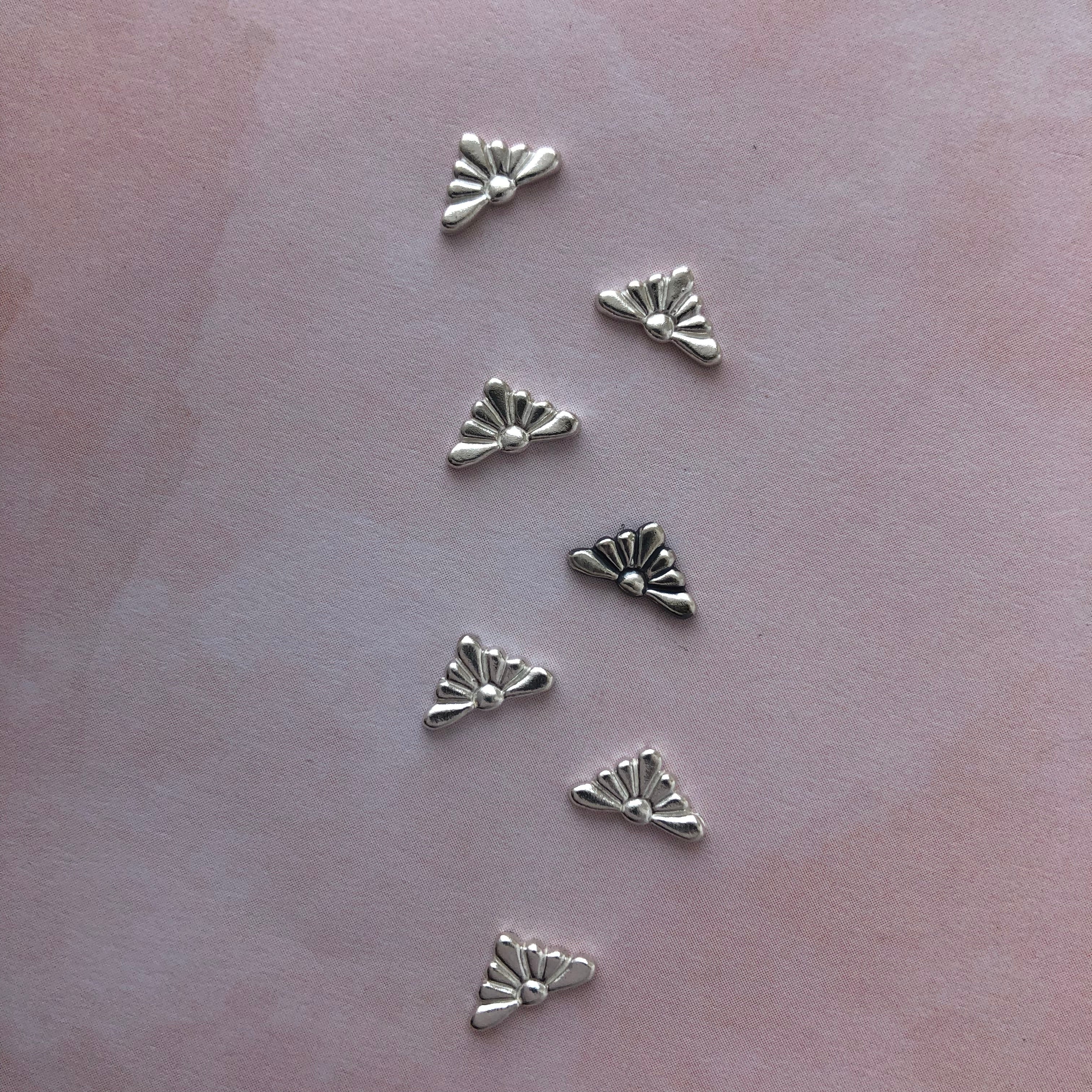 This detailed embellishment was inspired by Talavera Tiles you can often see in the southwest that are imported from Mexico. This silver embellishment was designed to nestle against your cabochon to give your piece a beautiful three dimensional stamped look! Use multiples of this casting to create a decorative cabochon border. Carved on one side, flat on the back so it's easy to solder to your base. Price per each.