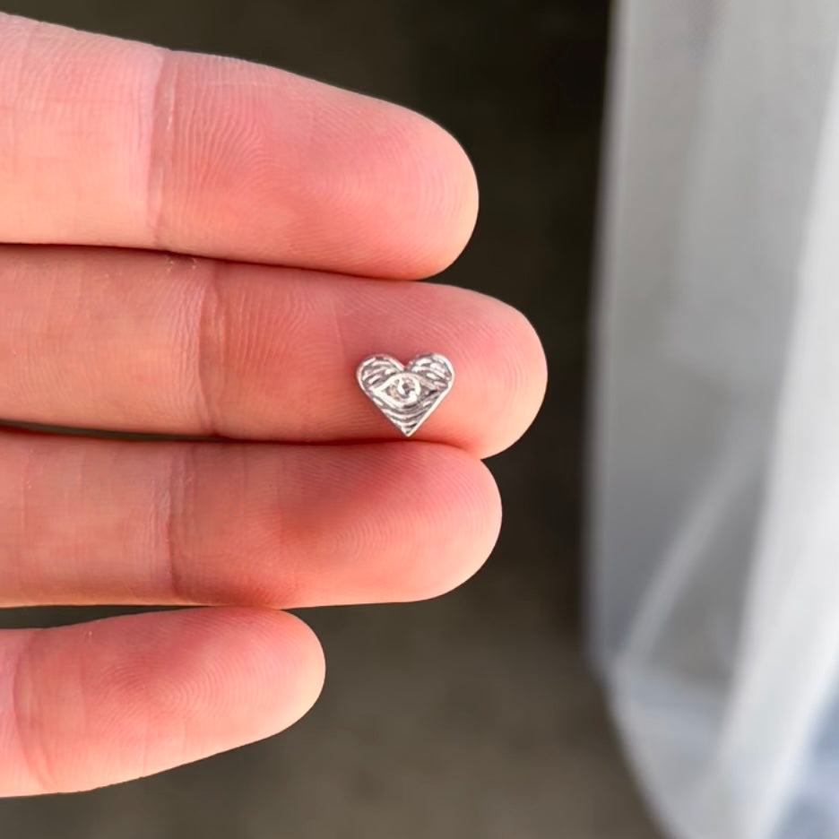 Sterling silver eye heart casting. This heart is carved on both sides with a matching pattern so you won’t miss detail on the backside. Price per piece.