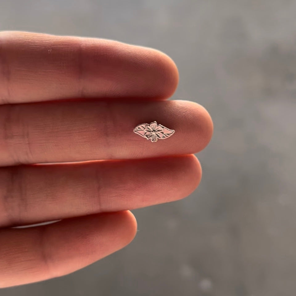 Sterling silver Hawaiian flower. Cast flower with leaves on either side. Price per piece.