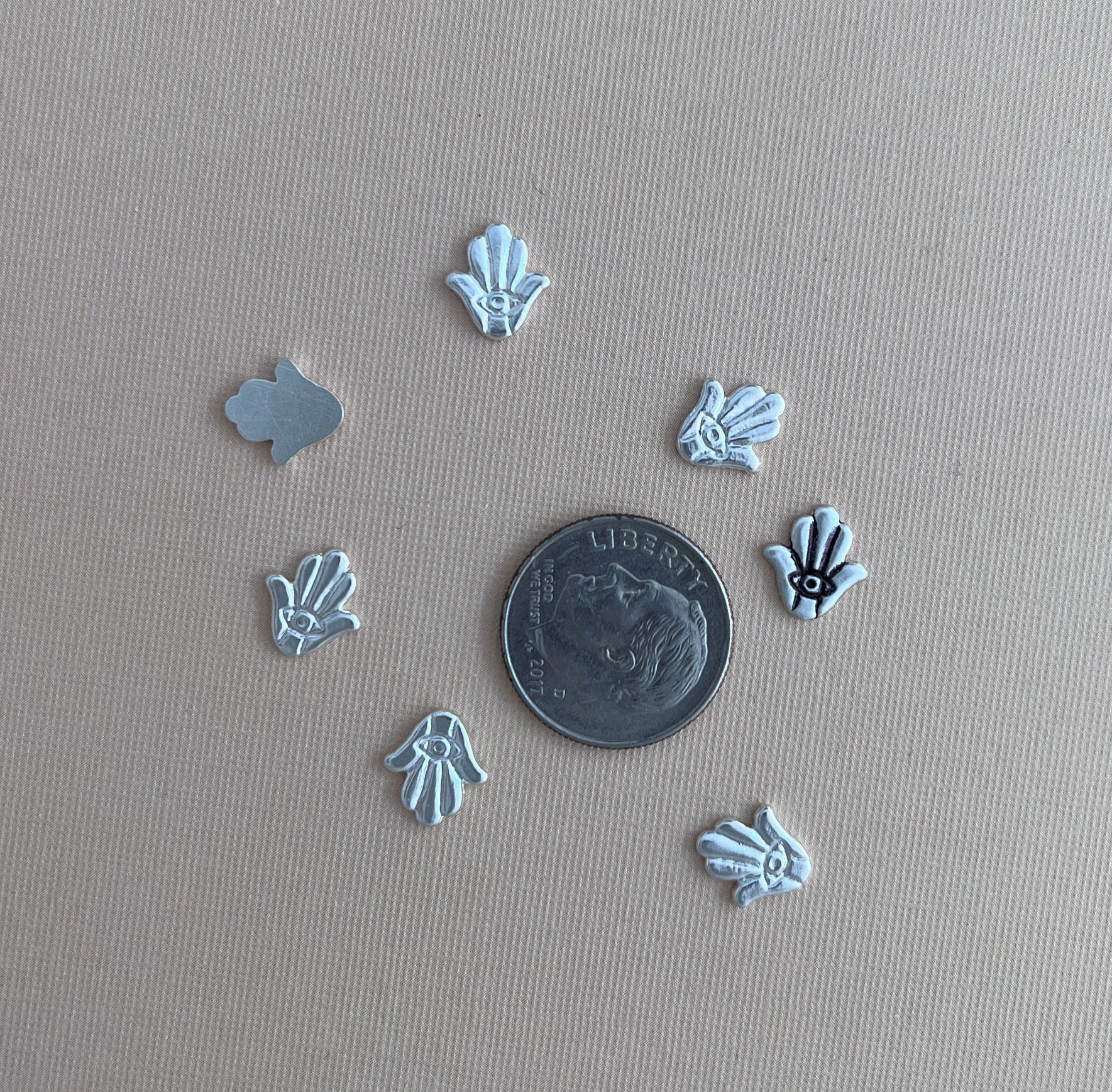 Hamsa accent is made of sterling silver with an eye in the center of the hand and ready for you to solder onto your jewelry making projects.